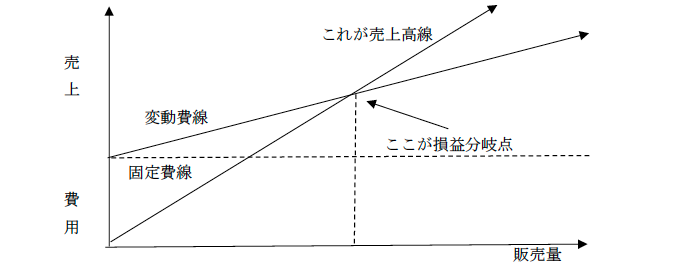 図2で示すと、売上が損益分岐点より左にあると赤字、右側にあれば黒字ということになります。